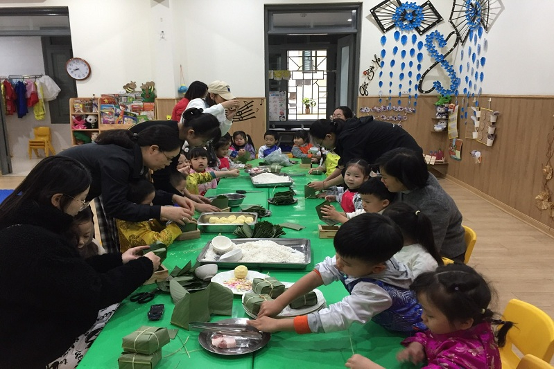 Ngày hội đã diễn ra trong không khí vui tươi, ấm áp và đầy ý nghĩa, với sự tham gia tích cực của quý phụ huynh, sự chuẩn bị chu đáo của đội ngũ giáo viên và sự hào hứng của các bé. Tại chương trình, các bé được trực tiếp tham gia vào các công đoạn phù hợp với lứa tuổi như rửa lá, xếp lá, cho gạo, đậu…, dưới sự hướng dẫn tận tình của giáo viên và cha mẹ học sinh. Qua đó, trẻ không chỉ được trải nghiệm hoạt động thực tế mà còn hiểu thêm về ý nghĩa của bánh chưng trong ngày Tết truyền thống Việt Nam.